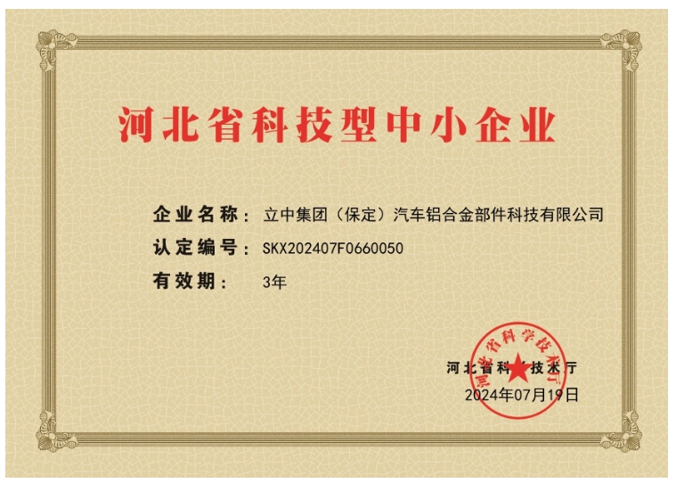 立中グループ(保定)自動車アルミニウム合金部品科学技術有限会社は保定市立中車輪製造有限会社に所属し、会社は「立中アルミニウム部品」と略称し、アルミニウム合金自動車関連部品の研究開発、設計、製造、販売を専門に従事する会社であり、主な製品は新エネルギー自動車アルミニウム合金転向節、電機ケース、キャリパーなどの自動車部品である。